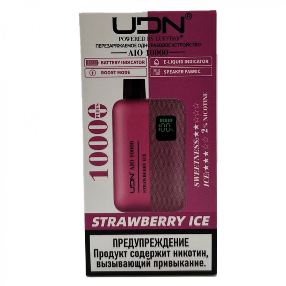Электронная сигарета UDN AIO 10000 Клубника Лёд на 10000 затяжек